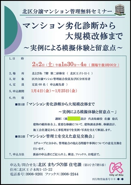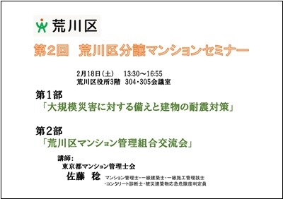 荒川区主催の分譲マンションセミナーの講師を務めました。